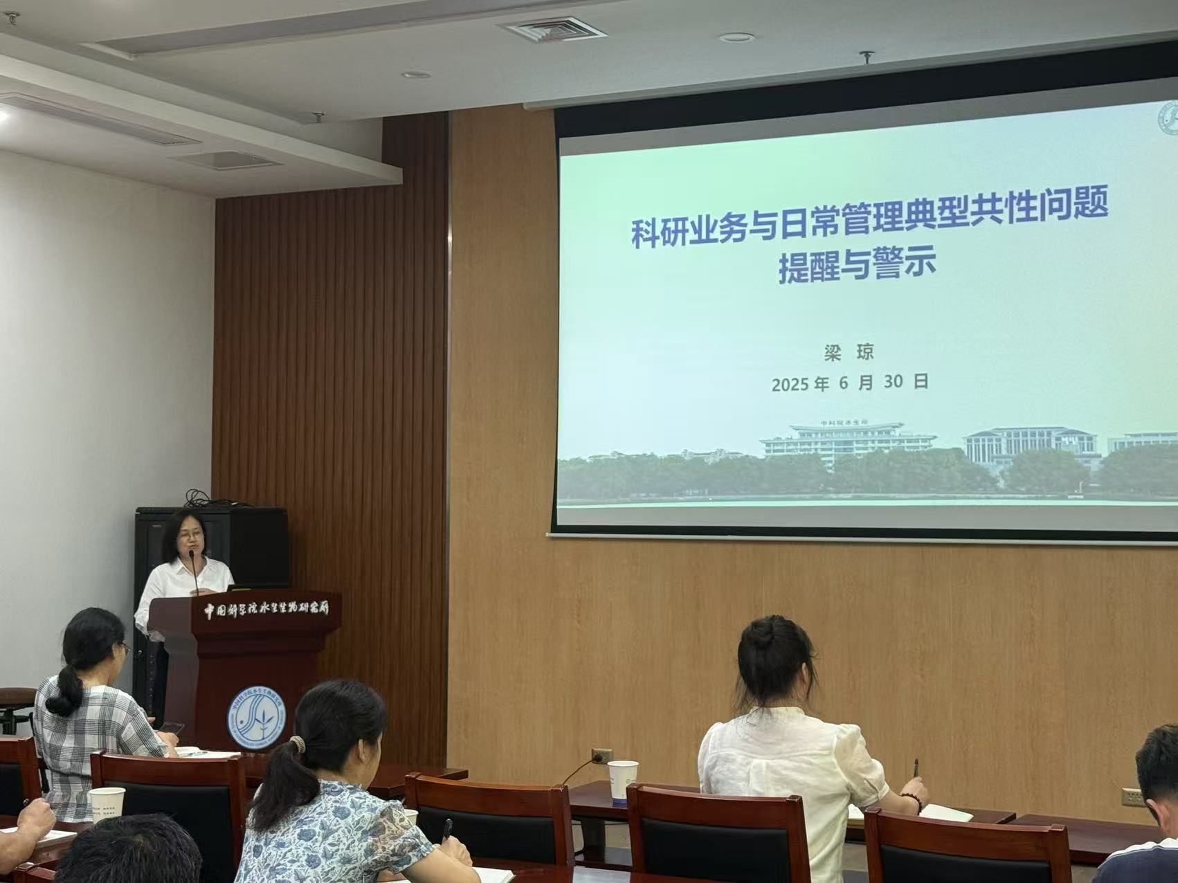 6月30日下午,中國科學院水生生物研究所管理與物業黨支部開展“警示教育進支部”活動,會議由黨支部副書記廖彩萍同志主持。所黨委副書記、紀委書記梁瓊以普通黨員身份參加會議,并應邀作了《科研業務與日常管理典型共性問題提醒與警示》的專題報告。
