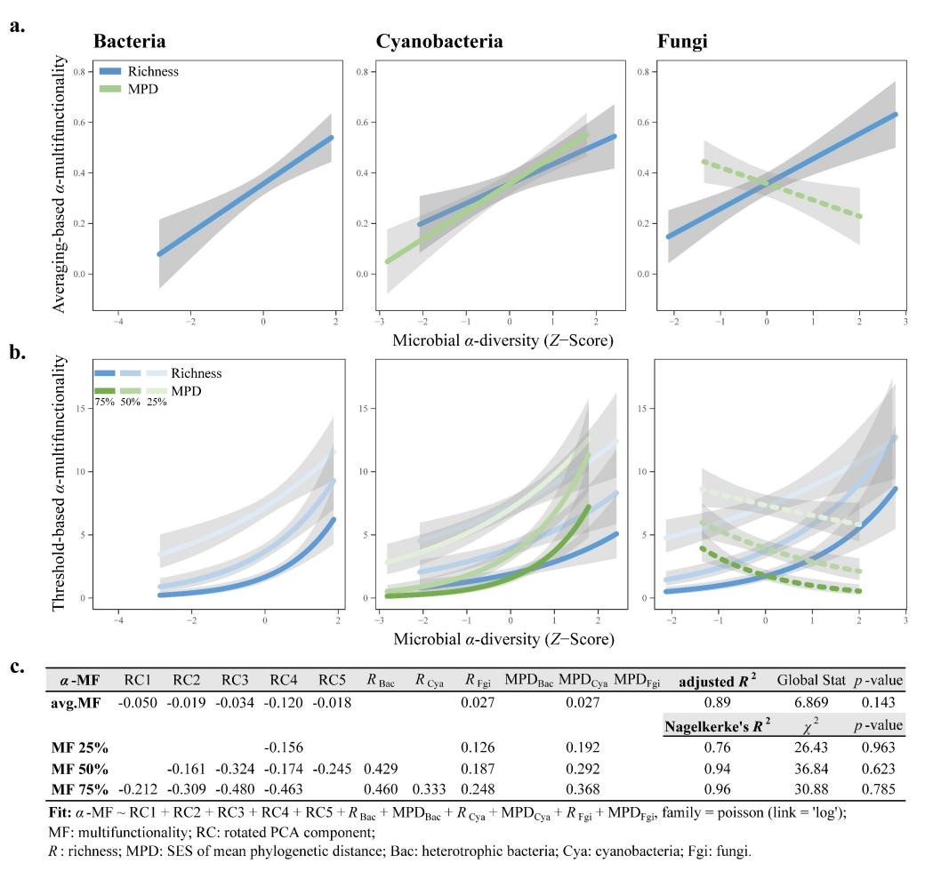 圖2. 生物結皮微生物多樣性對土壤α-多功能性的影響