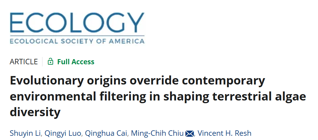 近日,中國科學院水生生物研究所蔡慶華研究員團隊在生物多樣性成因研究領域取得重要進展。該研究以題為"Evolutionary Origins Override Contemporary Environmental Filtering in Shaping Terrestrial Algae Diversity"的論文,正式發表于國際知名生態學期刊《Ecology》。
