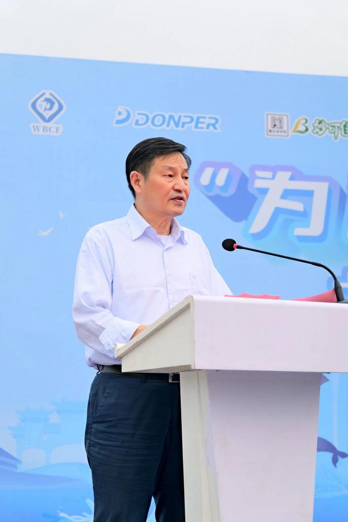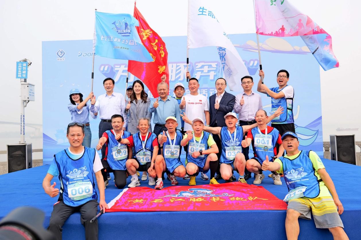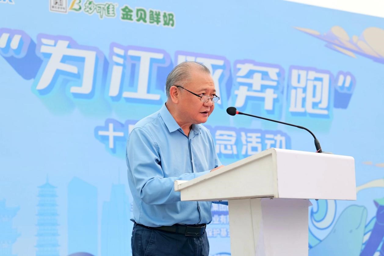 10月28日下午,“為江豚奔跑”十周年紀念活動在黃石江灘舉行,100名來自全省各行各業(yè)的跑者從10年前的起跑地出發(fā),拉開了今年“為江豚奔跑”的序幕。來自湖北省農(nóng)業(yè)農(nóng)村廳、黃石市人民政府、中國科學院水生生物研究所、鄂州市楊葉鎮(zhèn)人民政府、黃石市農(nóng)業(yè)農(nóng)村局農(nóng)業(yè)綜合執(zhí)法支隊、黃石市水利和湖泊局、黃石市慈善總會、武漢白鱀豚保護基金會、湖北東貝機電集團股份有限公司、黃石市金貝乳業(yè)有限公司、湖北長江天鵝洲白鱀豚國家級自然保護區(qū)、湖北長江新螺段白鱀豚國家級自然保護區(qū)等領導和嘉賓出席了本次活動。前5名完成當天賽段的跑者獲得了專門定制的江豚獎牌。