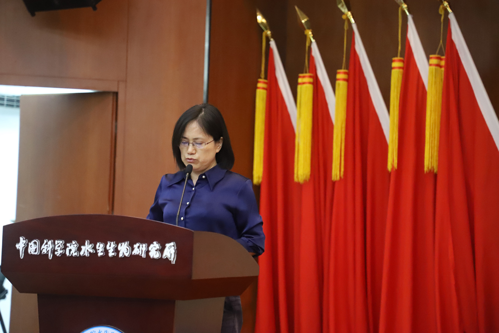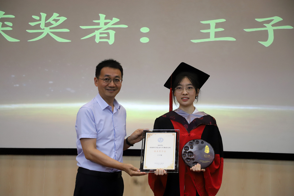在涢水獎學金頒獎環節,梁瓊副書記宣讀了獲獎名單,王子旋憑借其在碩博連讀期間圍繞“魚類低氧耐受與抗病毒先天免疫交互作用”取得的系統性突破成果(發表于《Nature Communications》和《PNAS》等頂級期刊),成為涢水獎學金的獲得者。繆煒所長為其頒發了獎牌和獎狀。